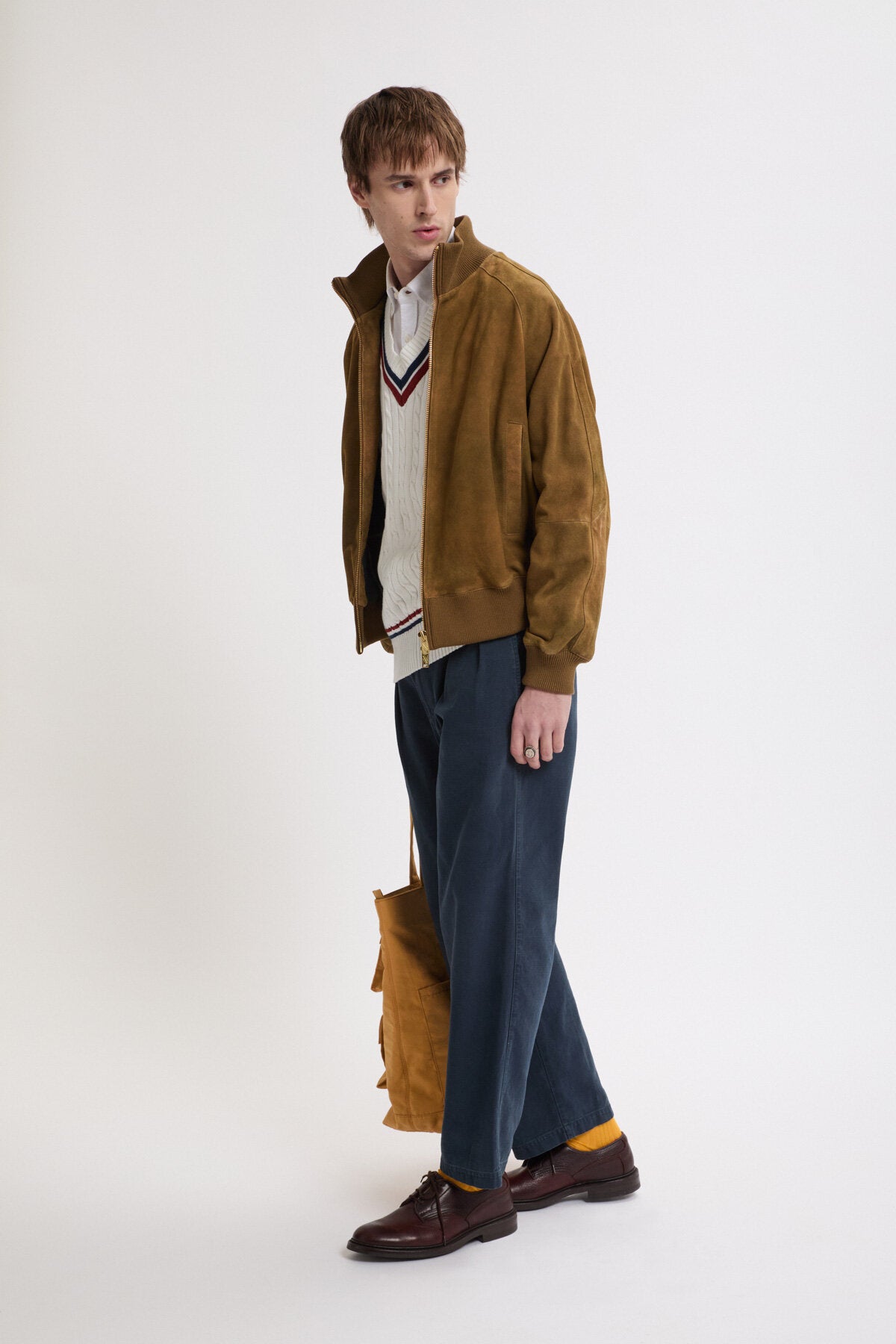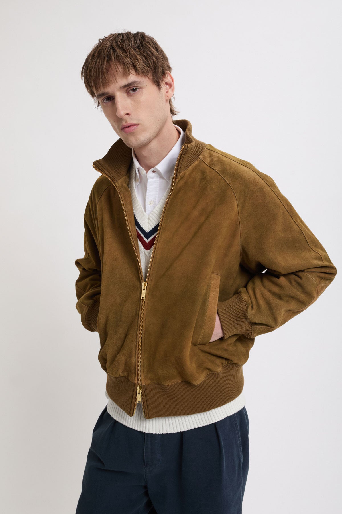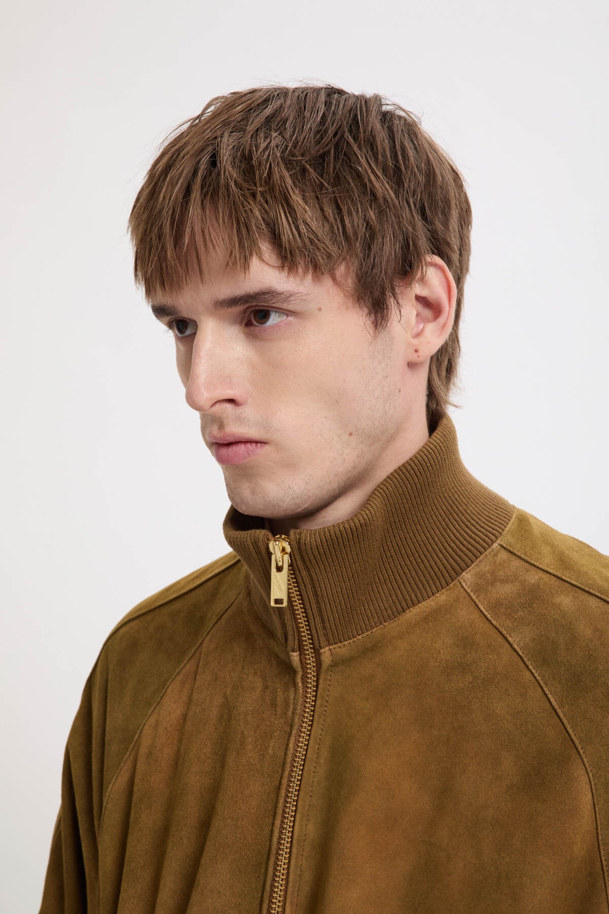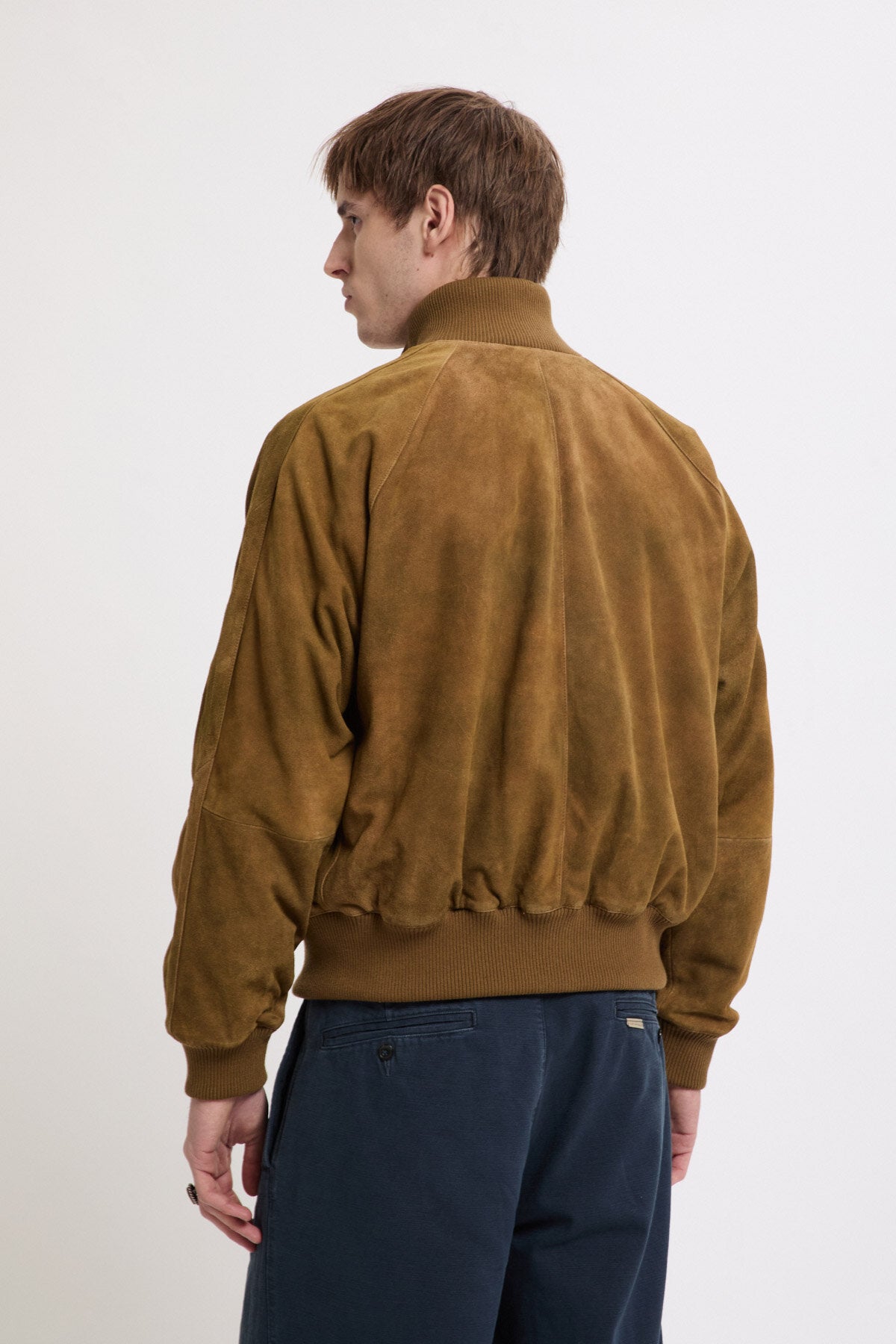 • Die Antique Suede Track Jacket wird aus 100 % sorgfältig ausgewähltem Veloursleder gefertigt und erhält durch eine spezielle Behandlung ein dezentes, vintage-inspiriertes Finish, das die natürliche Qualität des Leders zur Geltung bringt. Mit Raglanärmeln sowie einem elastischen, gerippten Kragen, Ärmelbündchen und Saum gestaltet, bietet das Modell optimale Bewegungsfreiheit und eine klare, maßgeschneiderte Silhouette. Jedes Detail ist bewusst durchdacht, um Funktionalität mit langlebiger Verarbeitung zu verbinden.