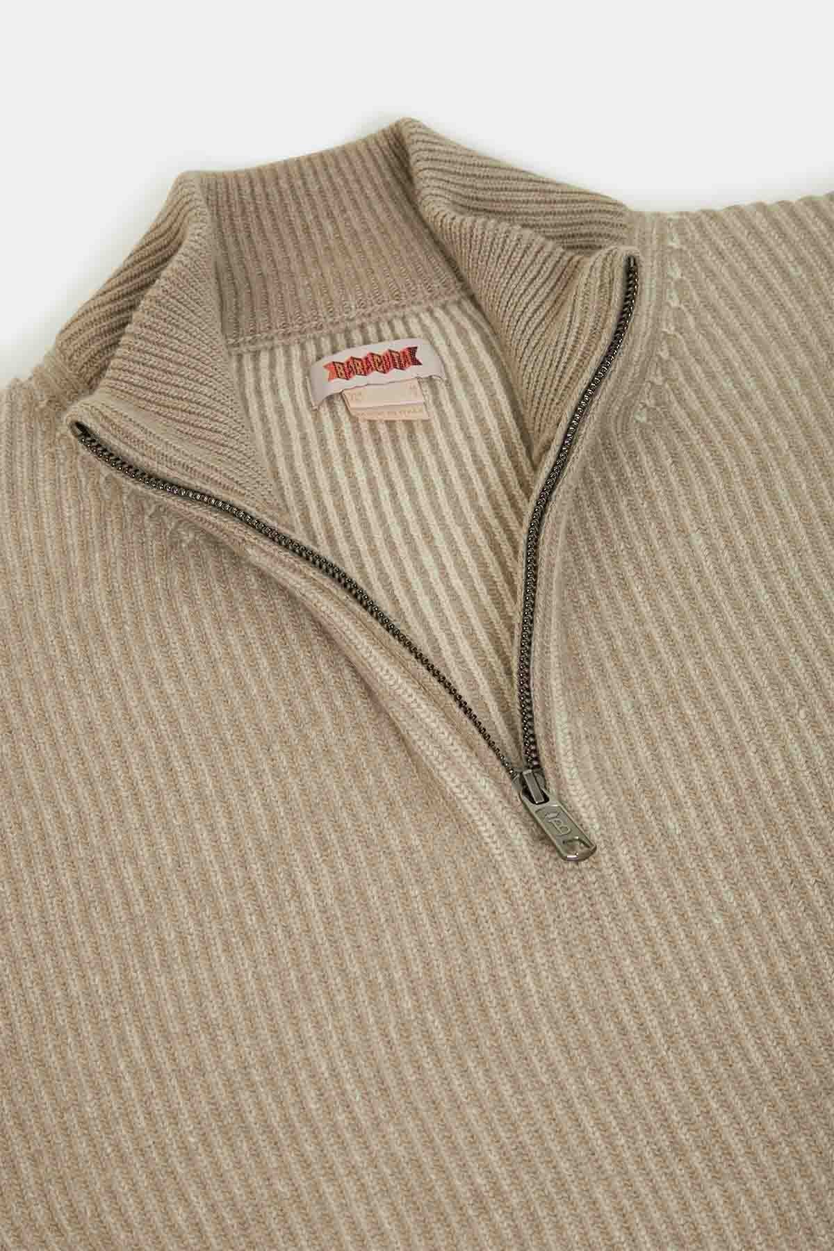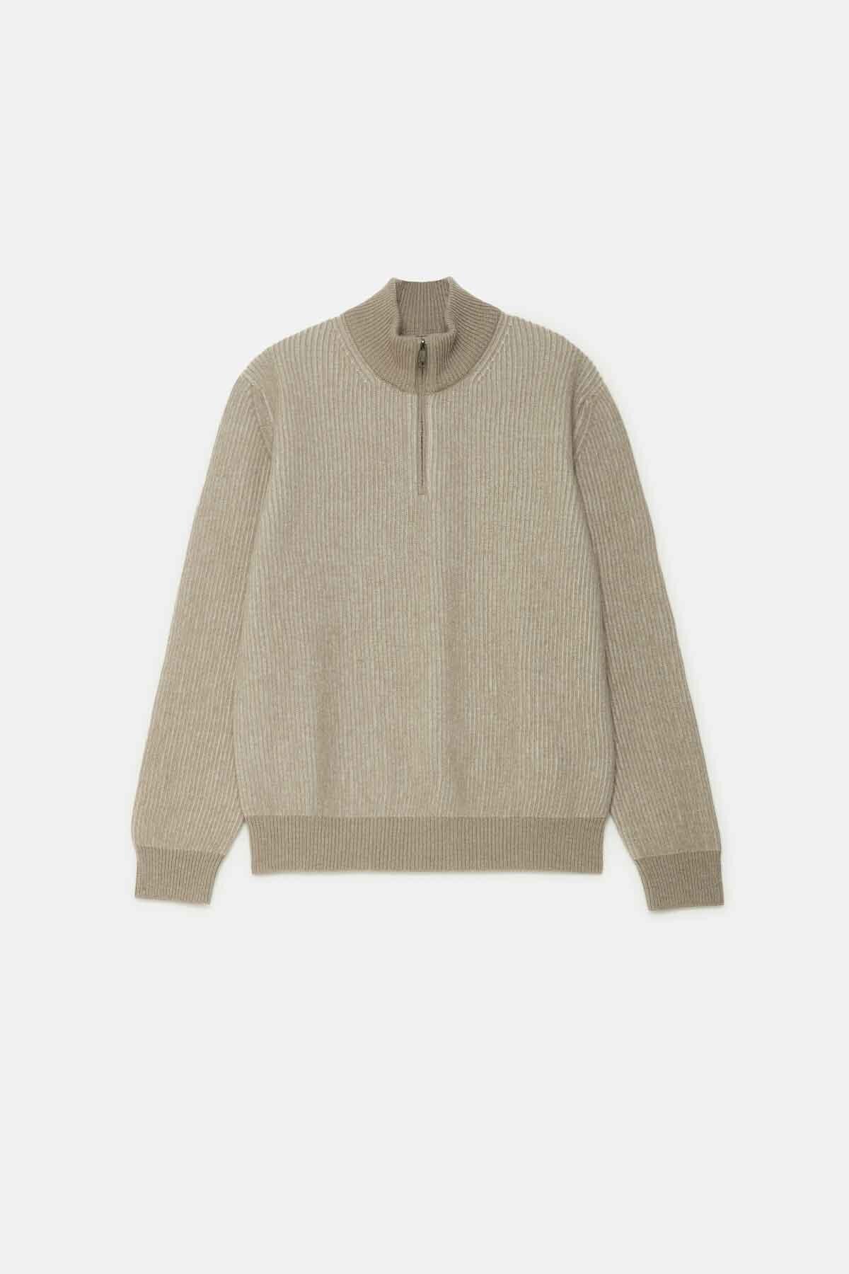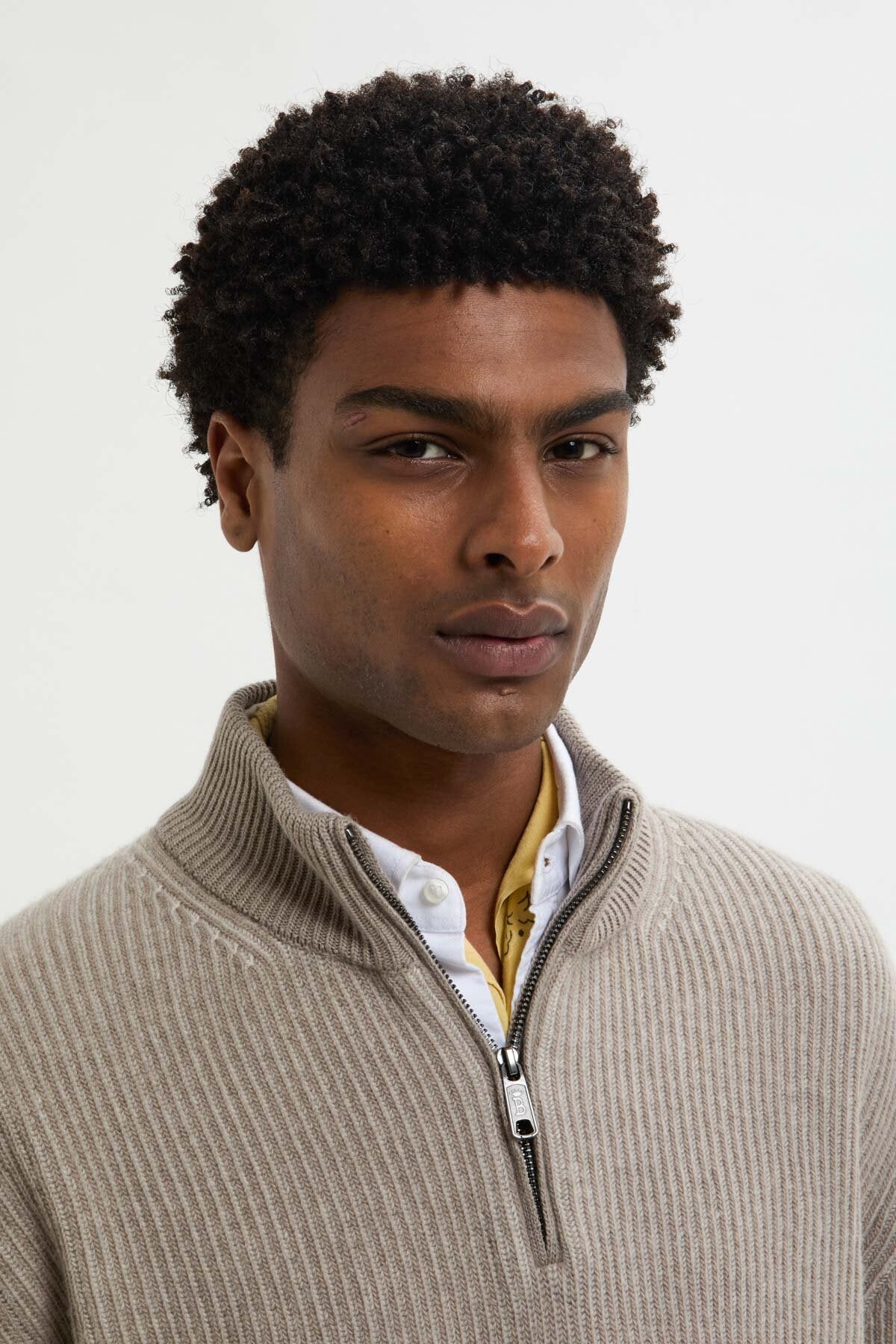 • • Gerippter Stehkragen mit halbem Reißverschluss