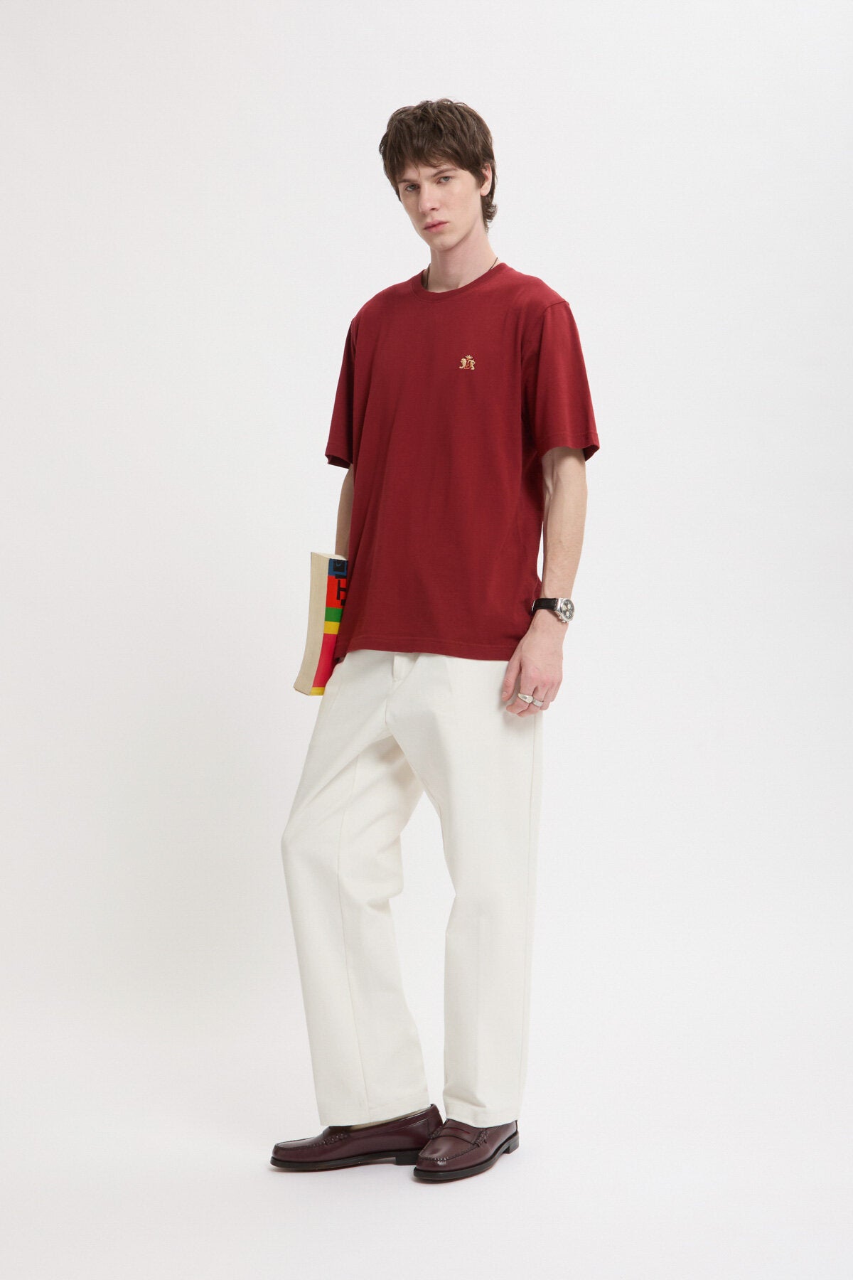 • Zu jeder G9 gehört ein T‑Shirt. Dieses Crewneck‑Tee mit Rundhalsausschnitt aus 100% Baumwolle ist weich, atmungsaktiv und auf Langlebigkeit ausgelegt. Das auf der Brust gestickte Baracuta‑Logo setzt einen dezenten, charakteristischen Akzent – perfekt für den täglichen Gebrauch.