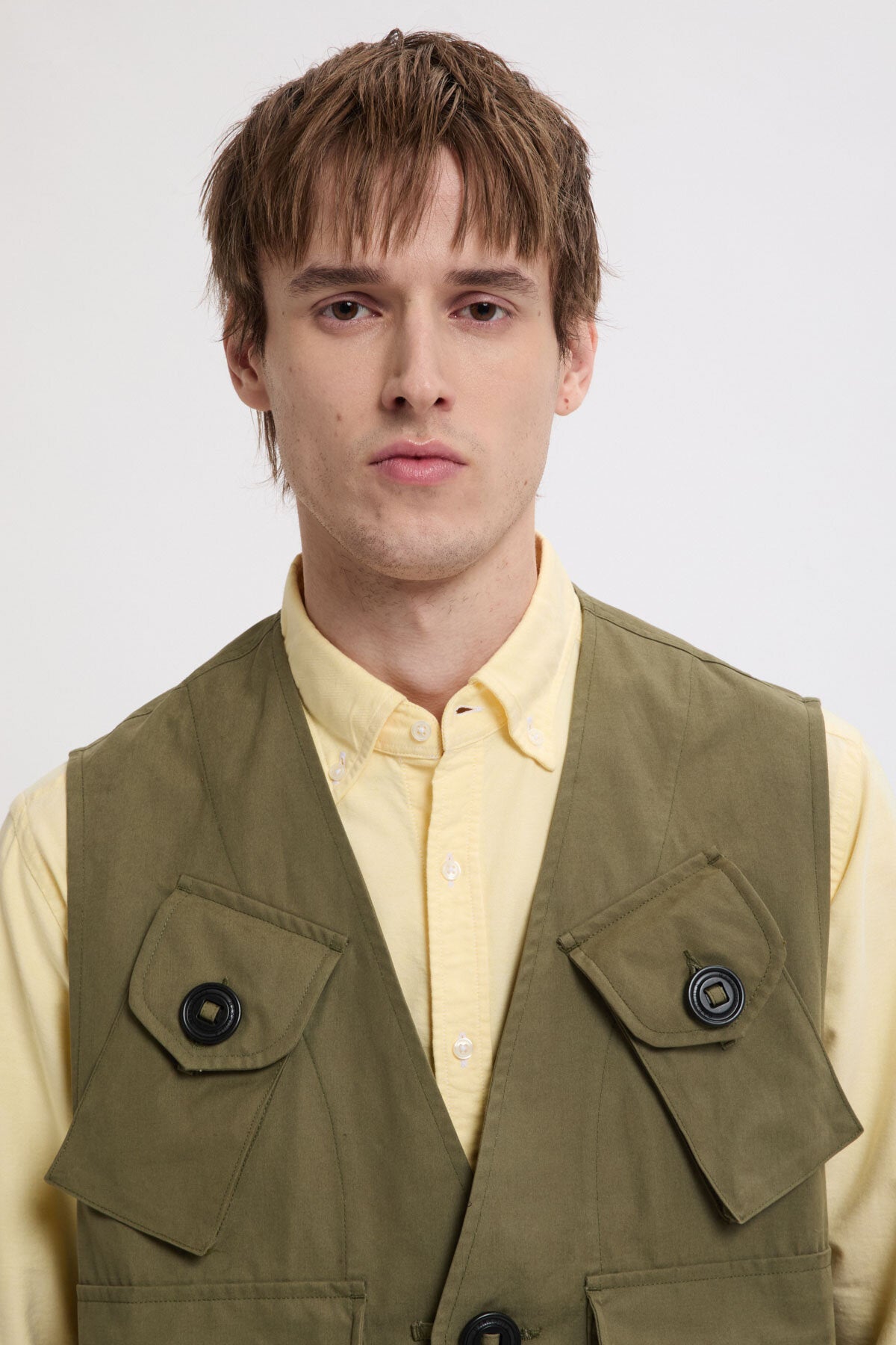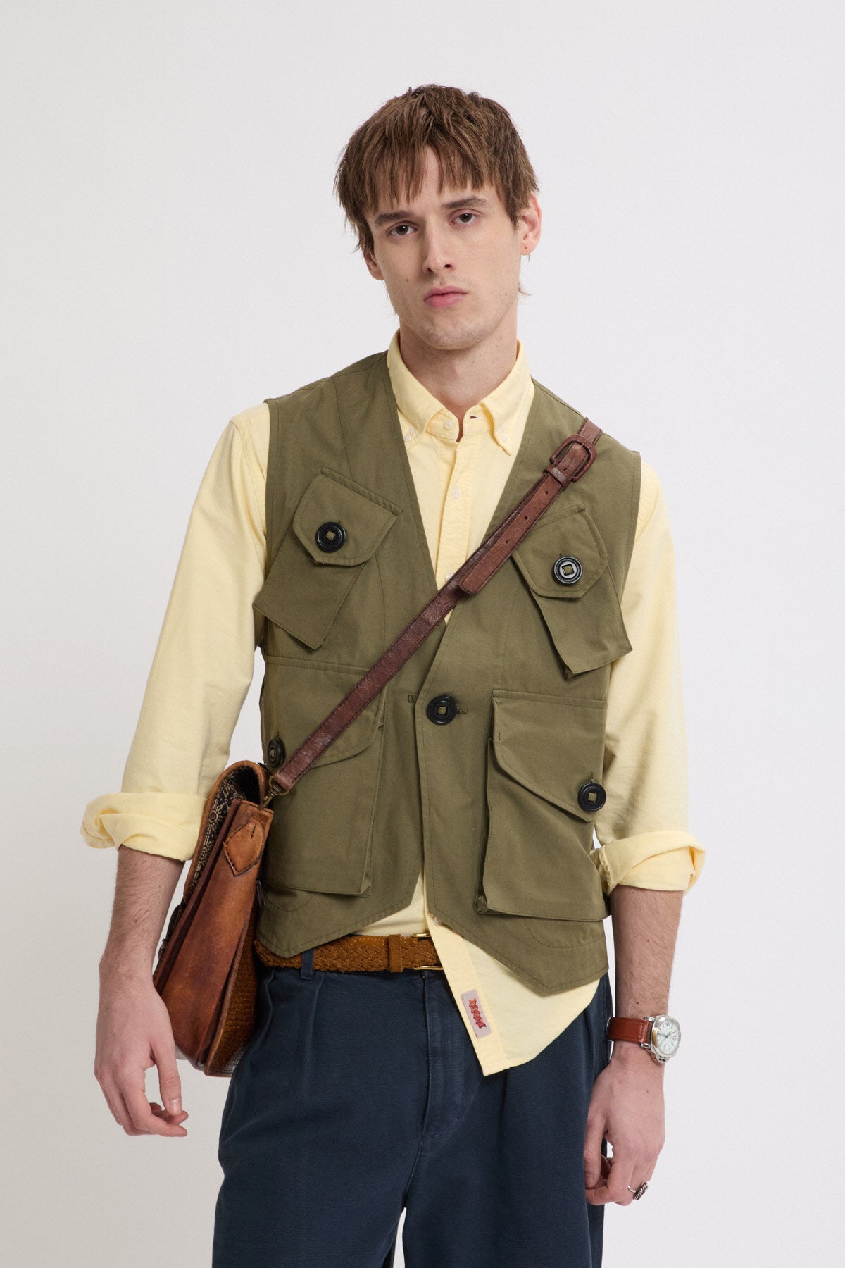 Die Sailing Cargo Vest besteht aus 100% Baumwollpopeline – einem leichten, festen Gewebe, das für seine glatte Oberfläche und seinen strukturierten Fall geschätzt wird. Popeline behält in jeder Falte ihre Form und verleiht der Weste ein sauberes, fast maßgeschneidertes Erscheinungsbild, ohne die Bewegungsfreiheit einzuschränken. Mit funktionalen Details gestaltet, verfügt das Modell über zwei rechteckige Brusttaschen sowie großzügige aufgesetzte Taschen mit Patten und Knopfverschluss. Diese Weste lässt sich ideal über Hemden, T‑Shirts oder Strickwaren tragen.