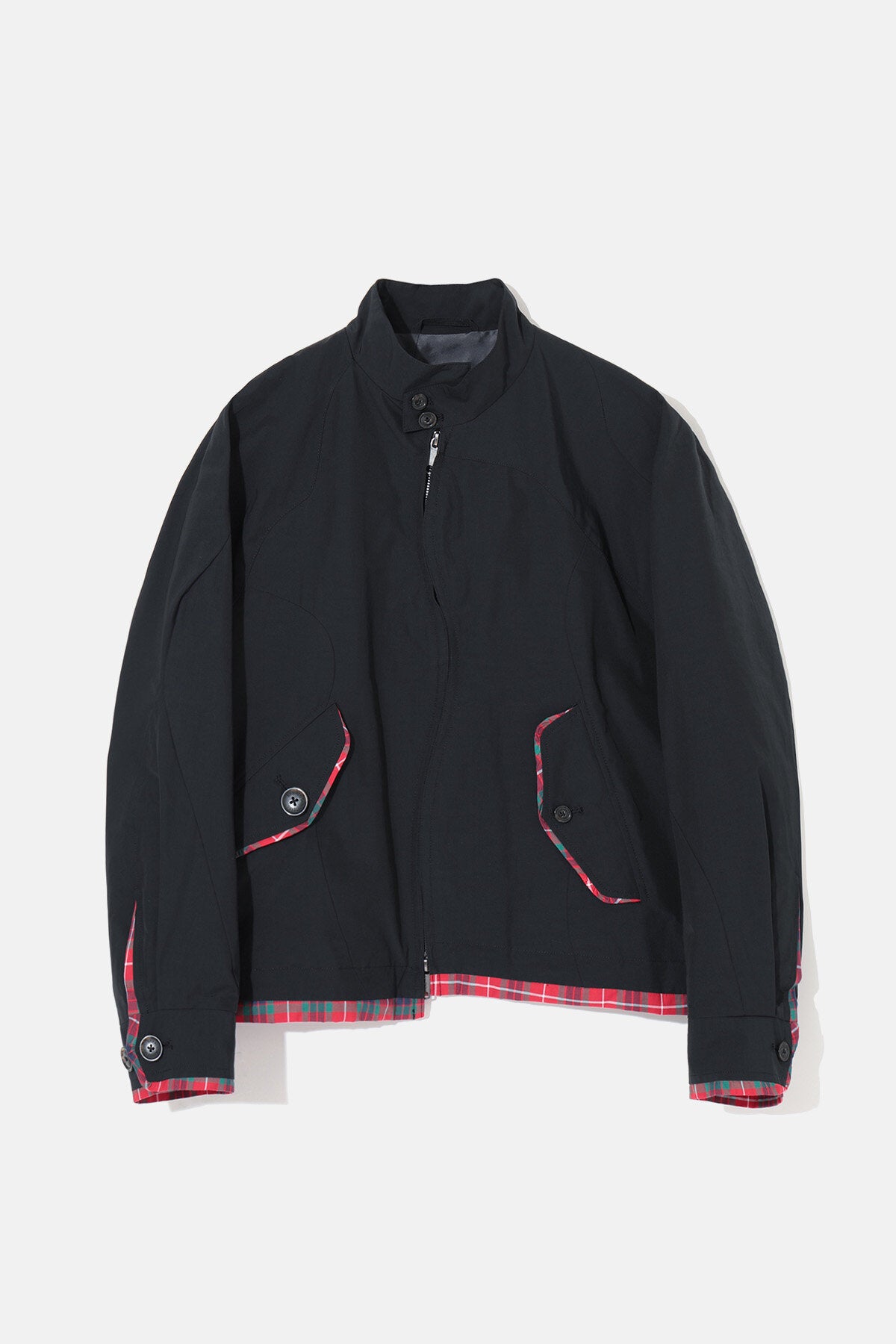 Il G9 da donna Undercover x Baracuta reinventa l’iconica giacca G9 Harrington attraverso lo sguardo sovversivo e inconfondibile di Jun Takahashi. Pur affondando le proprie radici nell’heritage britannico di Baracuta, questo modello in edizione limitata rompe le convenzioni grazie a una chiusura con zip curva e non lineare che disegna un movimento asimmetrico e sofisticato. Il risultato è una silhouette dinamica, leggermente decentrata, capace di reinterpretare con eleganza contemporanea il profilo classico della G9. I dettagli in Fraser Tartan rendono omaggio al capo originale. Disponibile in tre colorazioni.