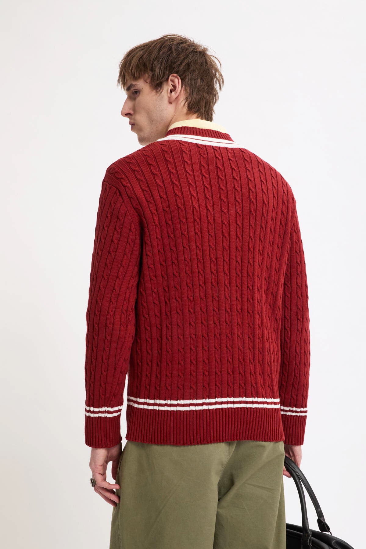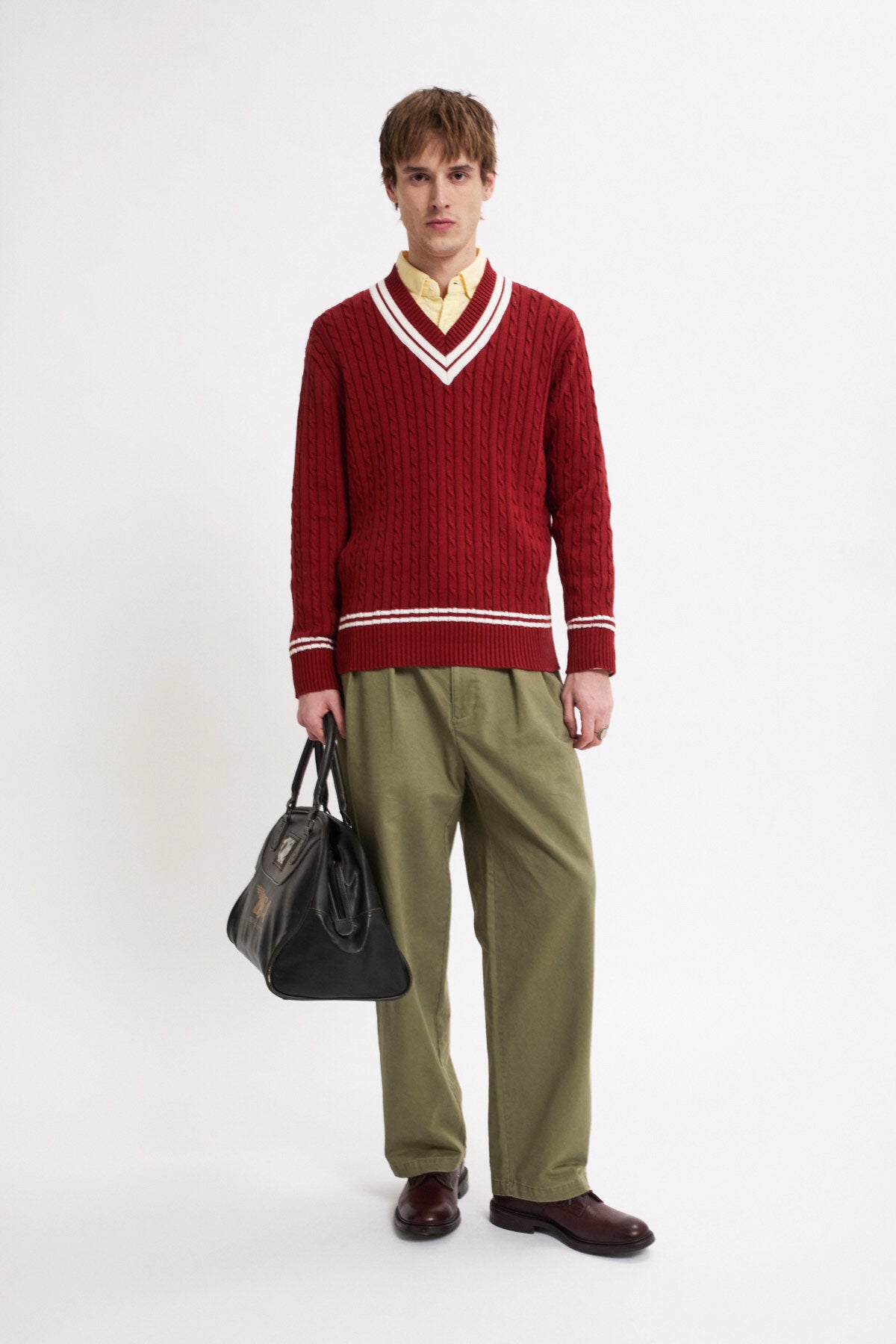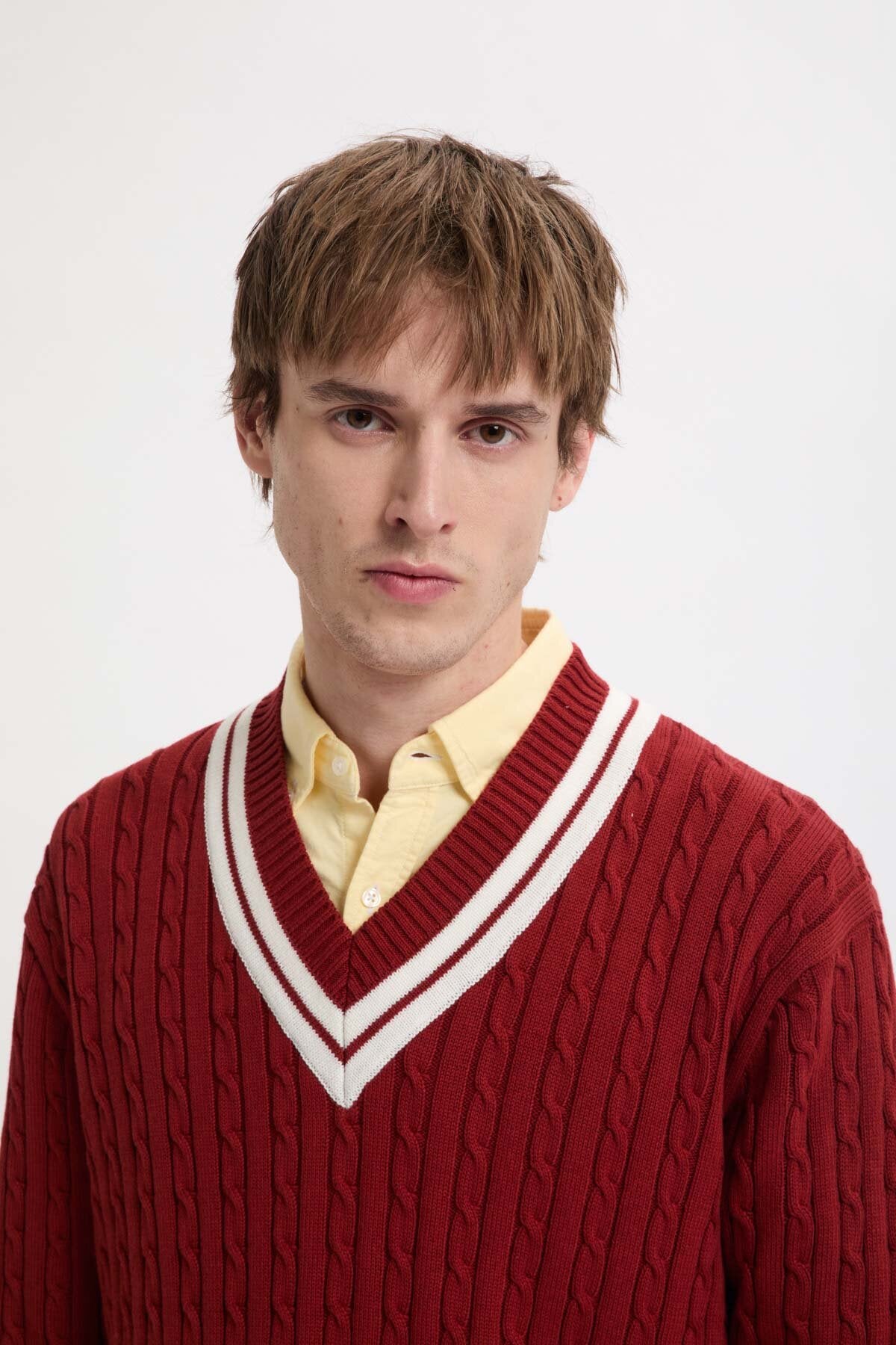 • The Cricket V-Neck is made from 100% cotton cable knit, soft yet sturdy for everyday wear.