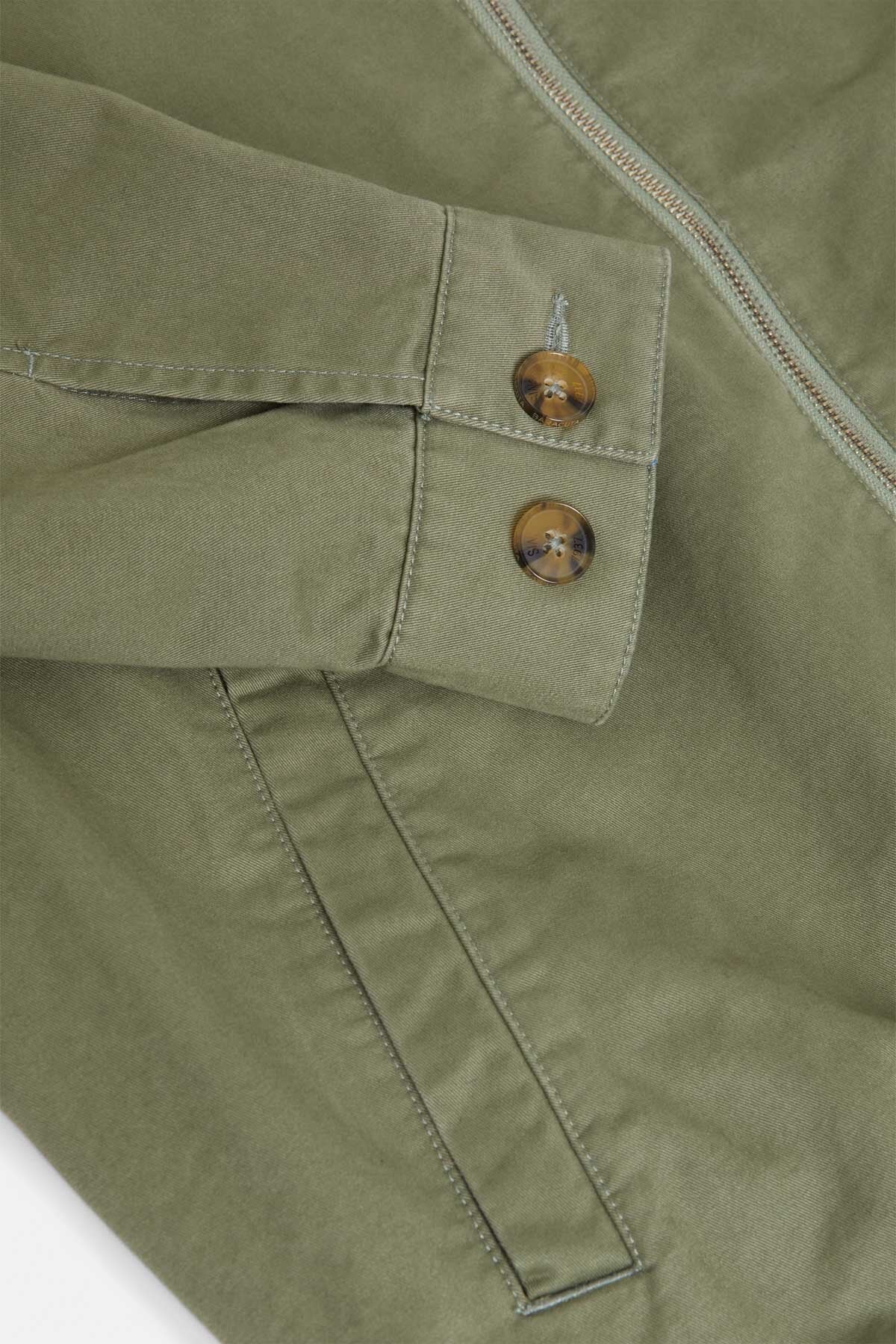 • The G18 Twill is made from 100% cotton twill, a fabric long valued for its strength, resilience, and subtle texture. Twill is woven in a distinctive diagonal pattern, which gives the material a natural durability and a soft drape that moves with you. This weave also makes the cotton more resistant to creasing and wear, allowing the jacket to retain its shape over time. With a slightly heavier weight than regular cotton, twill provides structure without feeling stiff, while developing a gentle patina with age.
