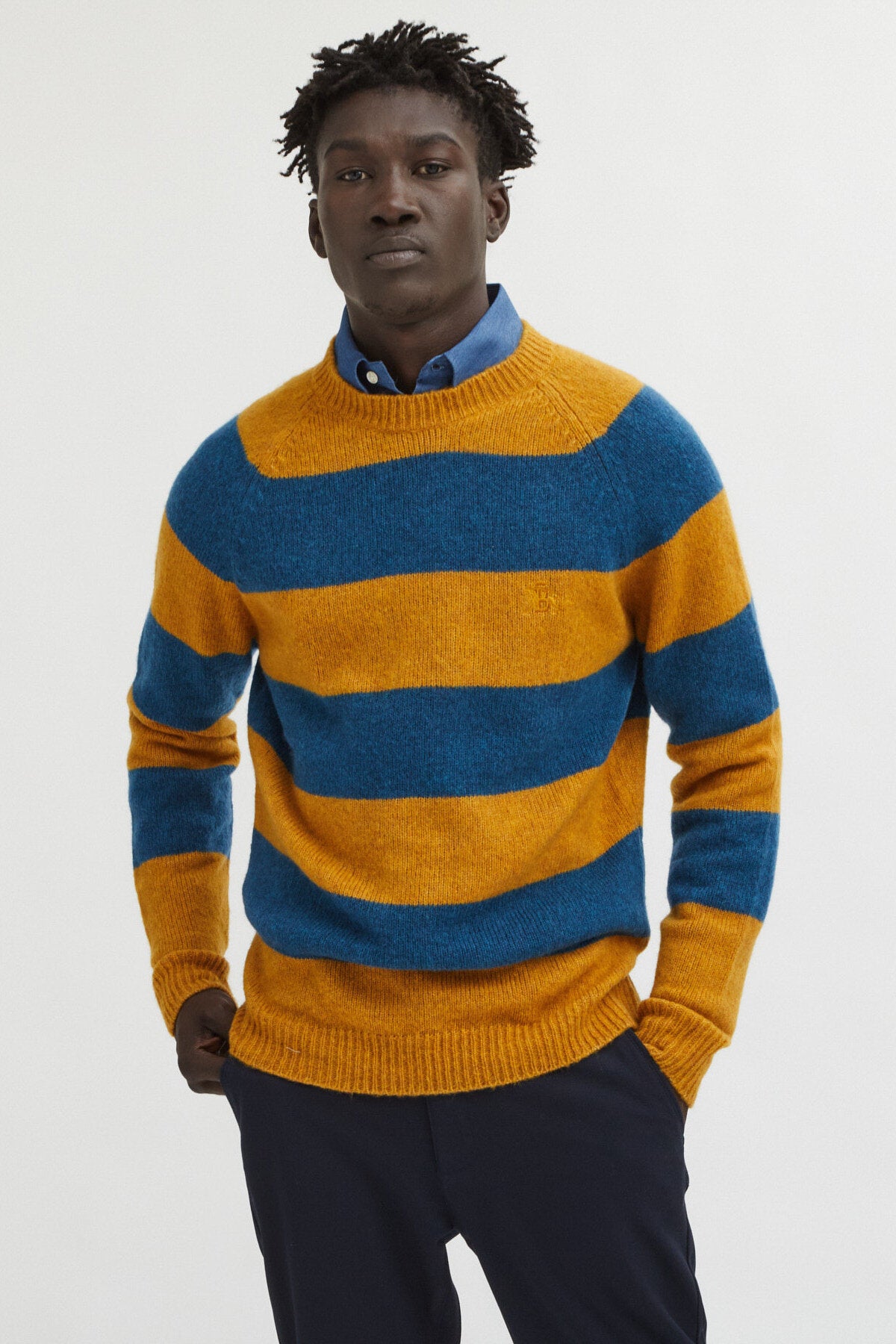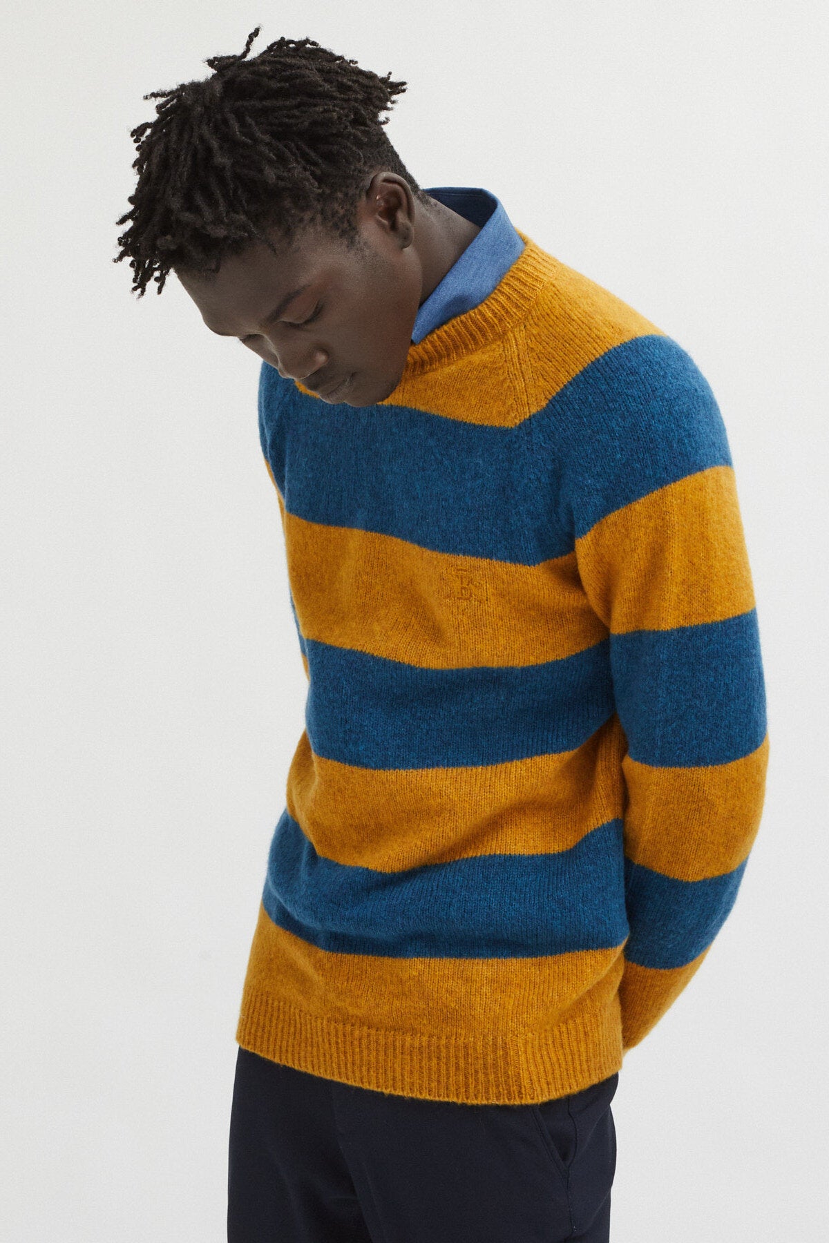• Prepare yourself, our Shetland Stripes Crew Neck is here and it's incredibly soft and so comfortable you'll never want to part ways with it. It's characterised by the classic "shaggy dog" collar and the varsity-style stripes - typical of American Ivy League Colleges. The tone-on-tone embroidered logo detail embellishes the garment. We suggest pairing it with our G4 Cord for a relaxed yet put together look, also perfect for any setting, whether it be catching up with mates over a beer to spending a day at uni.