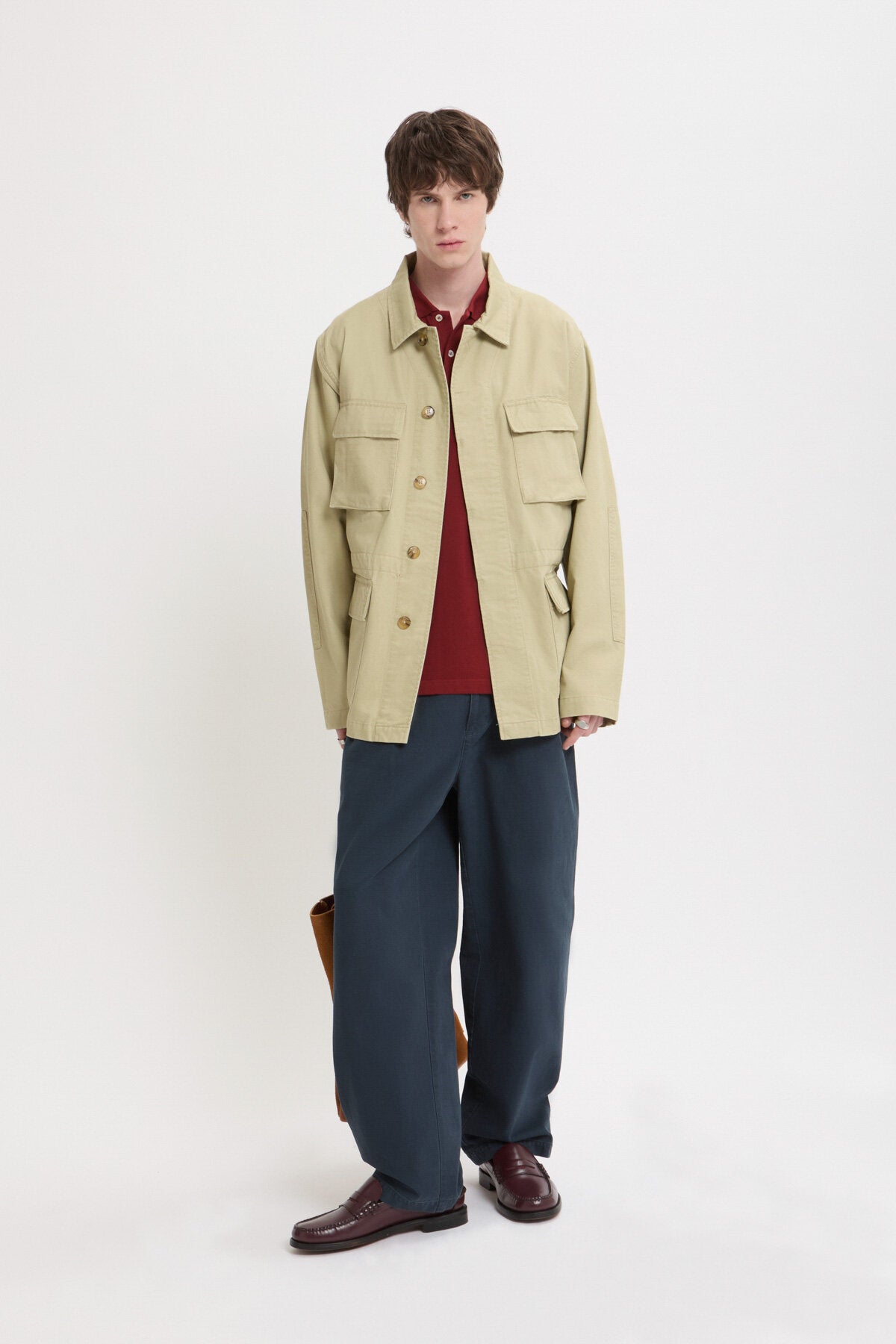 • The Twill Field Jacket is crafted from 100% cotton twill, a fabric celebrated for its distinctive diagonal weave that combines strength with softness. This structure not only gives the jacket subtle texture but also allows air to circulate, making it lightweight and breathable and ideal for layering across seasons.