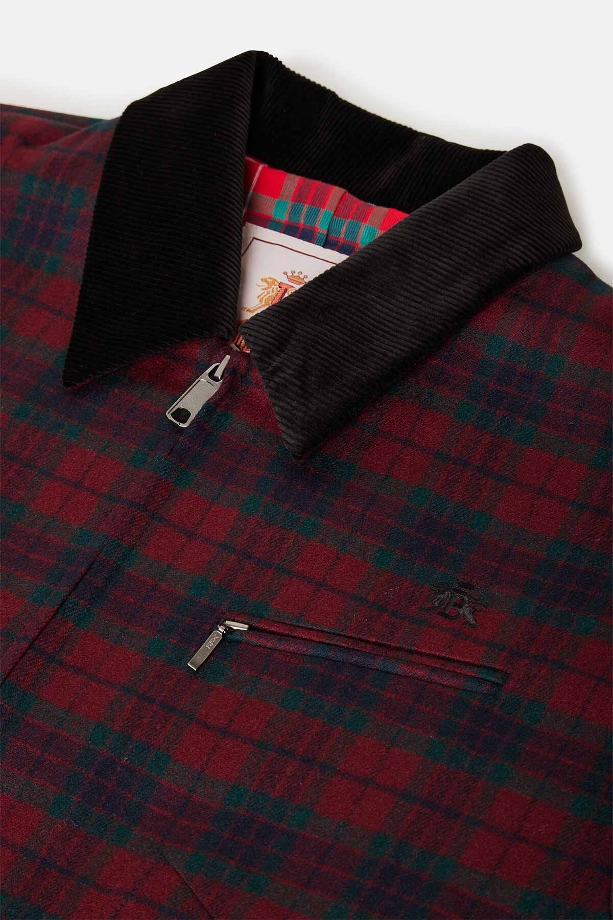 • The Baracuta Work Jacket updates classic British workwear with a modern edge made for her. Spot a Baracuta from a mile off? Easy. The umbrella back storm flap, slanted front pockets, and subtle embroidered logo keep it unmistakably classic, with a fresh twist. Cut in deep burgundy and green tartan, it’s finished with a corduroy collar for comfort and a signature adjustable waistband with a strap and metal buckle. A solid everyday jacket with just the right amount of attitude. Pair it with the matching quilted skirt in the same fabric for the full look.