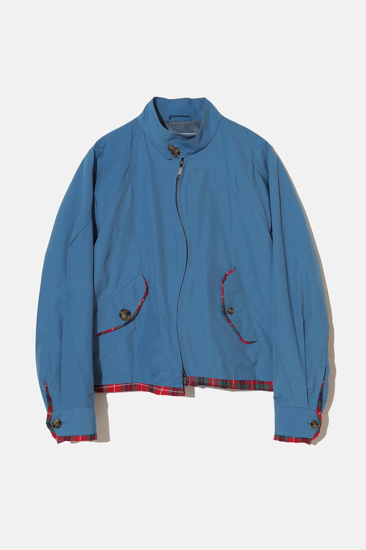 • The Undercover x Baracuta G9 Women’s Jacket reworks the G9 Harrington jacket with Jun Takahashi’s signature subversive twist. While rooted in Baracuta’s British heritage, this limited-edition design breaks convention through its non-linear, curved zip closure, creating a dynamic, off-centre line that subtly reshapes the classic G9 profile. The Fraser Tartan detailings pays homage to the original. Available in three colourways.